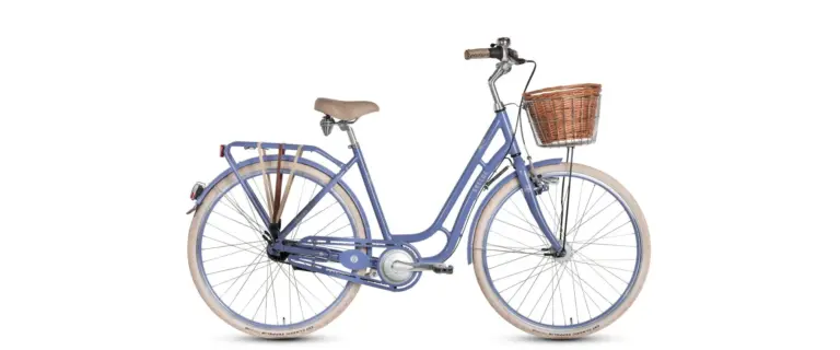 Ein praktisches Detail ist der fest montierte Frontgepäckträger mit herausnehmbarem Rattan-Korb. So lassen sich Einkäufe oder Taschen sicher transportieren und bei Bedarf einfach mitnehmen. Zusammen mit dem hinteren Gepäckträger ergibt sich eine gute Transportkapazität, ohne dass das Rad überladen wirkt.