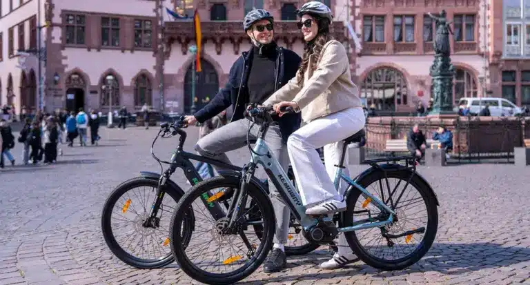 Der 3-Zoll-TFT-Farbdisplay zeigt relevante Infos. Verstellbarer Vorbau und Sattel fördern eine ergonomische Haltung. Zusätzliche Elemente wie das 90-Lux-Frontlicht und Aluminium-Pedale mit Reflektoren verbessern die Sicherheit bei schlechten Lichtverhältnissen. Das Rad wird zu 90 Prozent vormontiert geliefert und hat eine 24-monatige Garantie sowie 30-Tage-Rückgaberecht. Es ist in Blau oder Schwarz erhältlich. Optionale Upgrades umfassen einen Frontgepäckträger oder einen Ersatzakku (48 V/15 Ah).