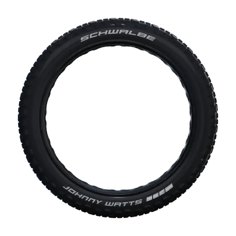 Profilansicht eines breiten Fahrradreifens mit der Aufschrift 'Schwalbe Johnny Watts'. (Foto: Hersteller)
