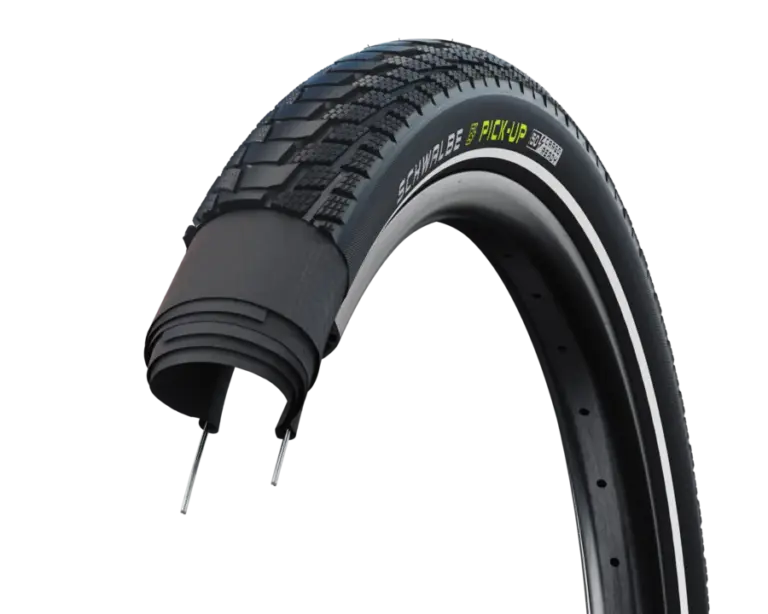 Der Boom der Cargobikes stellt Reifen vor besondere Herausforderungen: hohe Lasten, E-Antrieb, lange Bremswege und oft schlechte Radwege. Genau hier setzt der Schwalbe Pick-Up an. Es handelt sich um den ersten echten Cargo-Reifen des Herstellers, konsequent ausgelegt auf schwere Beladung und den harten Alltag im Stadtverkehr. Mit seiner extrem stabilen doppelten Karkasse wird der Pick-Up zum sprichwörtlichen Packesel unter den Fahrradreifen – ohne die Fahreigenschaften komplett der Robustheit zu opfern.