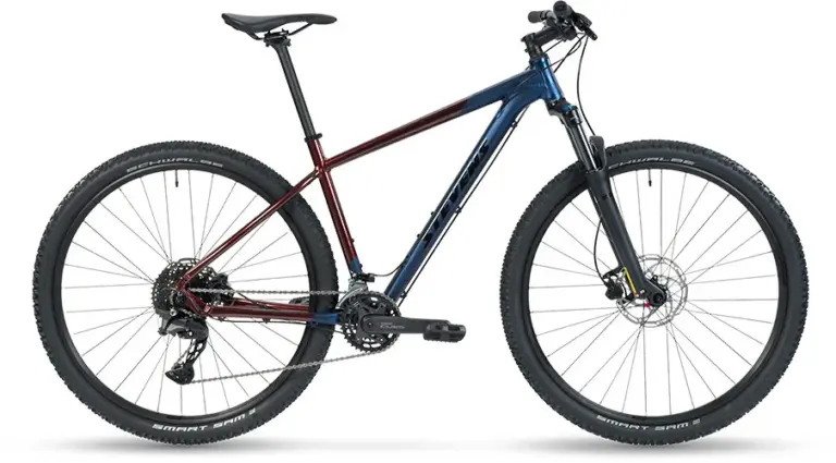 Die Laufräder bauen auf Formula-Naben mit Schnellspannachsen und Oxygen RM-M19-Felgen auf. Bestückt sind sie mit Schwalbe Smart Sam Active-Line Reifen in 57 Millimeter Breite, je nach Version in 27,5 oder 29 Zoll. Das Profil ist vielseitig für Feldwege, Schotter und einfache Trails, ohne auf festem Untergrund fehl am Platz zu wirken. Beim Gewicht nennt das Datenblatt 14,3 Kilogramm für die 27,5-Zoll-Version und 14,6 Kilogramm für das 29-Zoll-Modell. Das sind nachvollziehbare Werte für ein robust ausgestattetes Hardtail. Hinzu kommen die Farbvarianten Midnight Blue Red und Frozen Green. Die unverbindliche Preisempfehlung für das Taniwha beträgt 849,00 Euro.